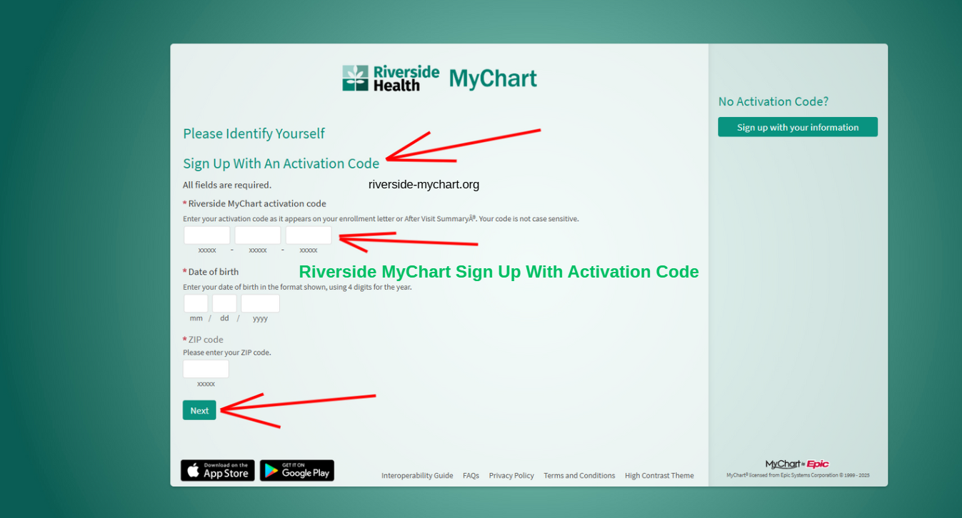 Yes. On the Riverside MyChart sign-up page, select the option to register without an activation code. You’ll be asked to enter personal details and answer identity-verification questions.