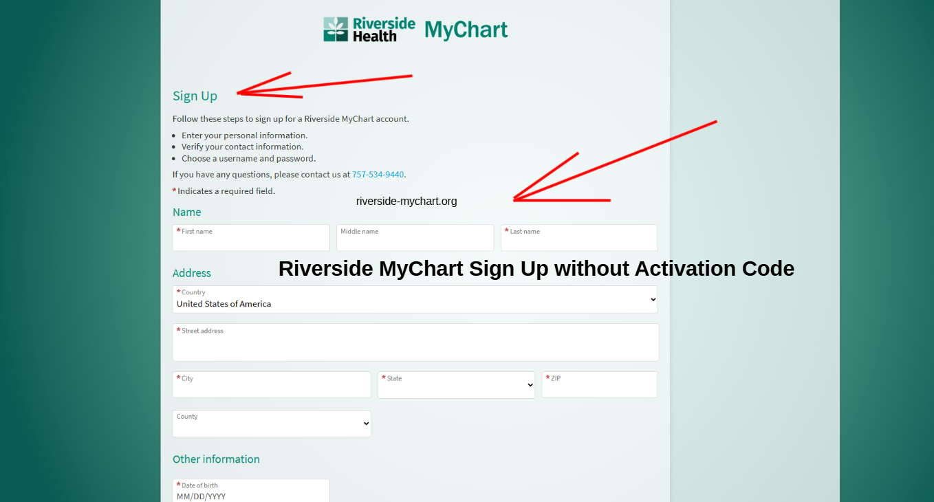 Step 1: Visit the Riverside MyChart sign-up with your information page at https://mychart.riversideonline.com/MyChart/Signup and enter some basic personal information.